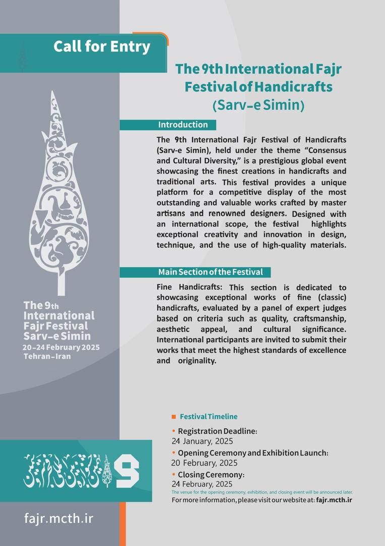 The 9th International Fajr Festival of Handicrafts (Sarv-e Simin) 20 th -24 th February 2025 Tehran, Iran